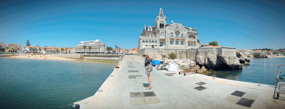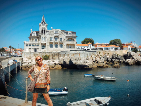 Driving along the coast, we arrived at the town of Cascais where we had some more free time to roam the streets. All the sidewalks are covered with the same Portuguese limestone that covers the boardwalks of Rio di Janeiro in Brazil. I wish we had more time here. The sidewalk cafés looked so good. We also walked over to the beach, where there were sunbathers, boats, and a castle or fort (who knows – they are everywhere).